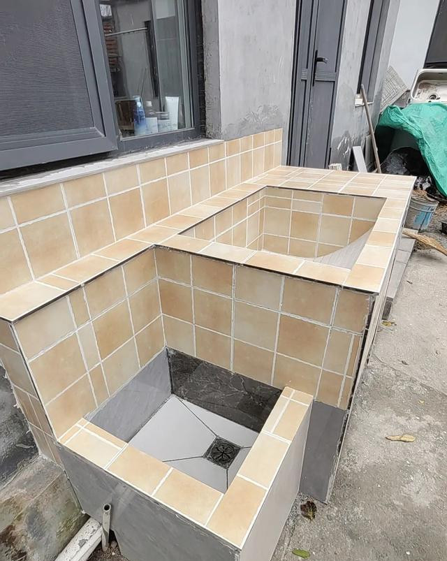 网友@村口老李内助: “池塘砌矮点,七十五公分高,我七十岁洗被子不踮脚。控制留个小台子放肥皂,顺遂。别贴淡色砖,泥巴印子显脏,深灰耐造。”