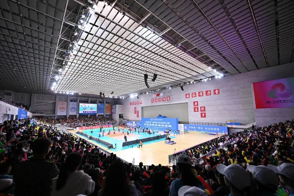 这是2025年11月20日拍摄的在广东江门举行的第十五届世界通达会排球男人成年组冠亚军决比赛现场。图/新华社