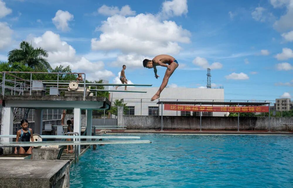 2021年9月2日,湛江市体校的跳水学员在进行测验。图/新华社
