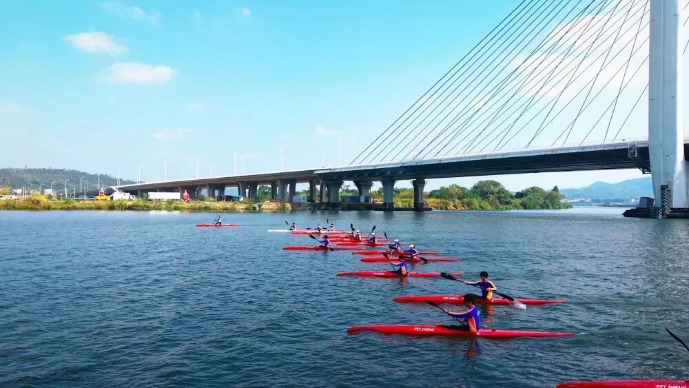 2025年10月26日,市民在广东韶关武江区韶州体育公园旁北江水域熟识赛艇。图/韶关市文化广电旅游体育局
