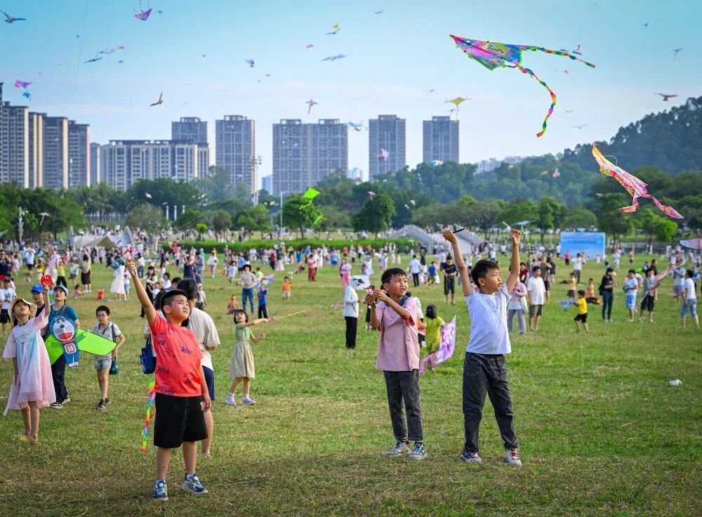 2024年10月13日,市民在广东阳江南国风筝场放飞风筝。图/阳江市委宣传部
