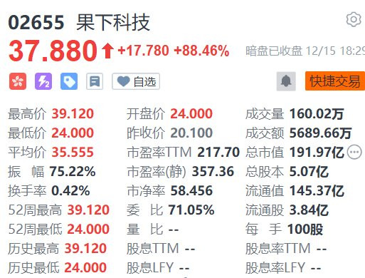 格隆汇12月15日|中国储能行业的可再天真力处分决策及家具提供商果下科技(2655.HK)明日挂牌,当天在富途的黑市价收涨88.46%,报37.88港元。一手100股,账面赚1778港元。