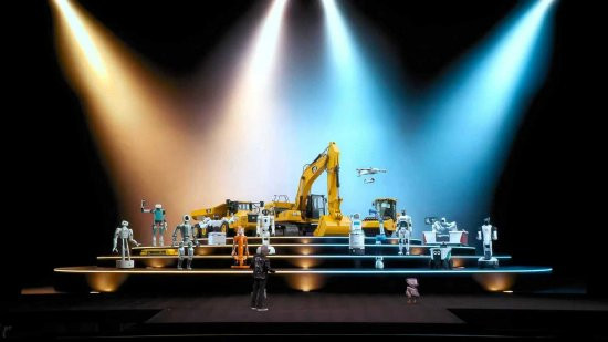 现场大屏幕上,黄仁勋展示了不同时势、不同用途的机器东说念主,它们被采集展示在分层舞台上:从东说念主形机器东说念主、双足与轮式就业机器东说念主,到工业机械臂、工程机械、无东说念主机与手术提拔设立,展现出一版“机器东说念主生态图景”。