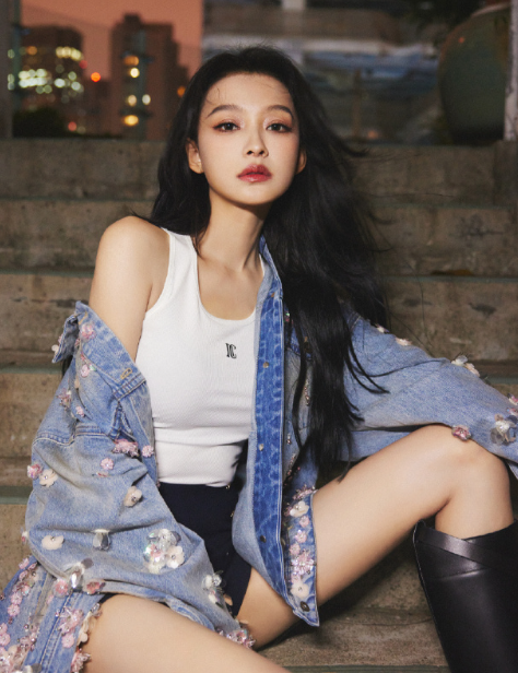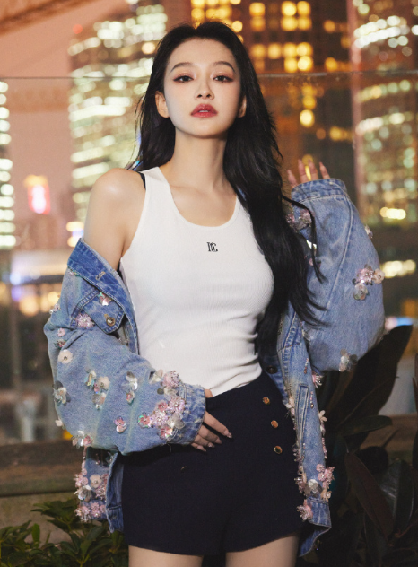 孙怡的浮松秋日小穿搭,白背心牛仔,簇新怡东谈主