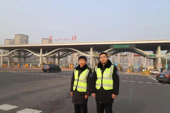 杭甬高速宁波收费站收费班长胡纪山(左)、收费员史凌杰(右)。图源:宁波晚报