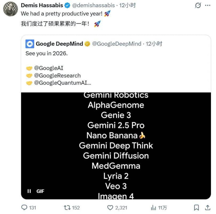 望望 Demis Hassabis 晒出的这张年度成绩单,Gemini 3、Genie 3、Veo 3、Nano Banana... 照实硕果累累。